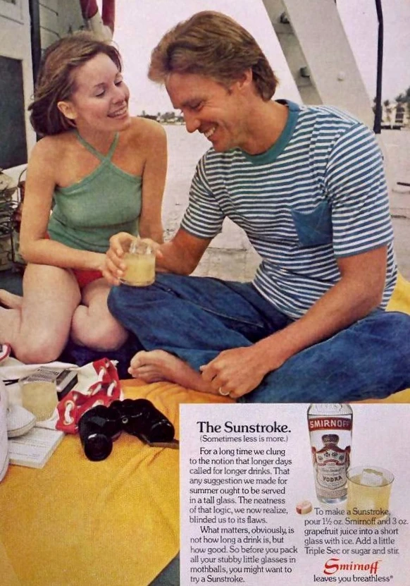 В рекламе 1970-х годов продавцом был исключительно секс. Слоганы на рекламных плакатах могли ещё что-то мямлить о самом продукте, но графика на разные лады давала один и тот же посыл: если купишь нашу фиговину, секс немедленно придёт в твою жизнь. В моём детстве этот принцип кристаллизовался в глумливой поговорке «кто носит фирму Адидас, тому любая девка даст», но реклама 70-х была без всяких шуток построена на этом принципе.